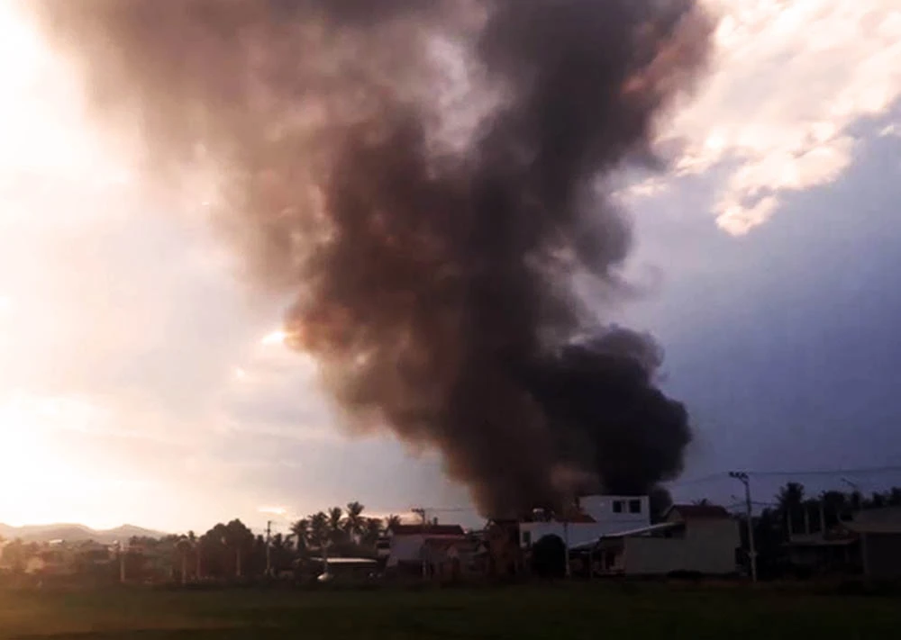 Khói ngùn ngụt bốc cao lên bầu trời. (Ảnh do người dân cung cấp)