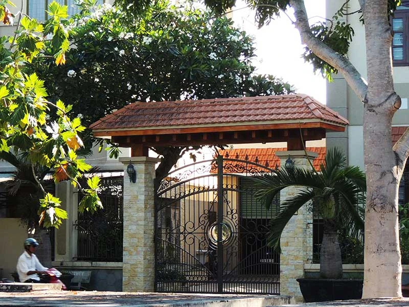 Cổng rào và nhà xe của ông Việt chiếm một phần lối thoát hiểm công cộng. Ảnh: T.PHÚC