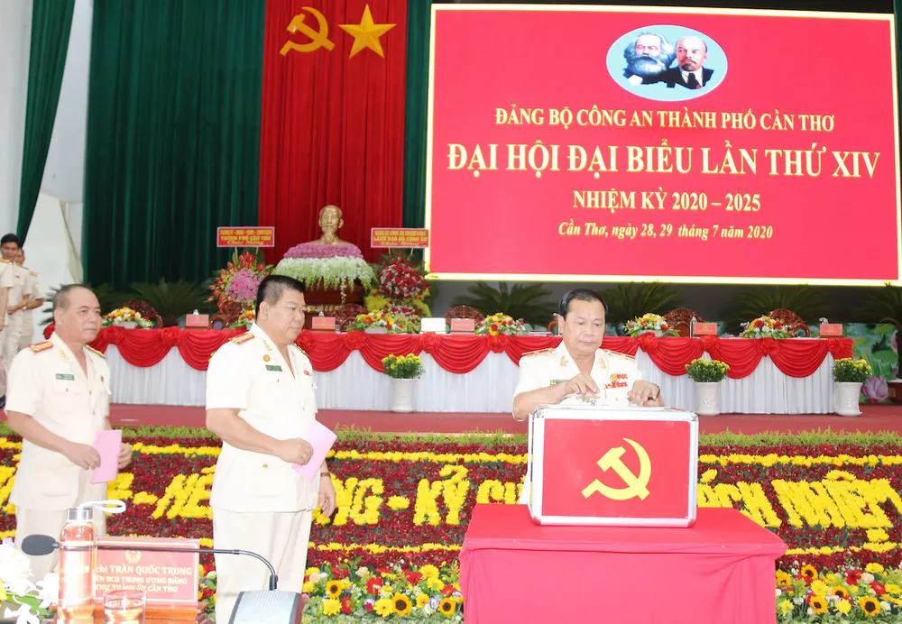 Thiếu tướng Nguyễn Văn Thuận, Giám đốc Công an TP Cần Thơ cùng các đại biểu bỏ phiếu tại đại hội. Ảnh: HD