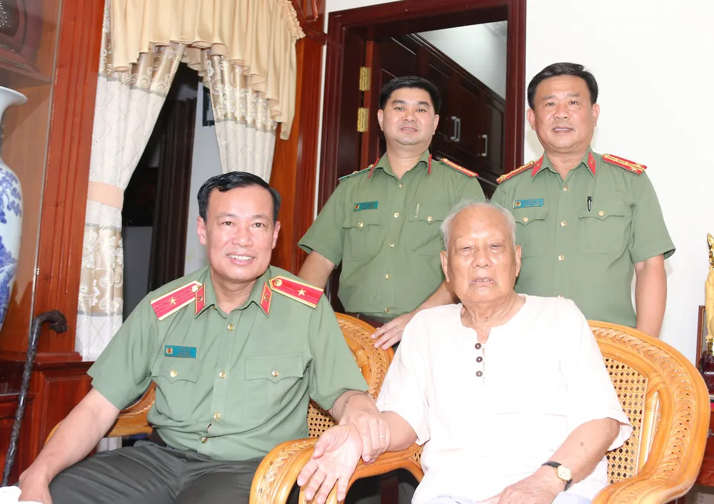 Thứ trưởng Bộ Công an Lê Tấn Tới (ngồi bên trái) đến thăm Nguyên Trưởng Ban Tổ chức Trung ương Lê Phước Thọ. Ảnh: HD