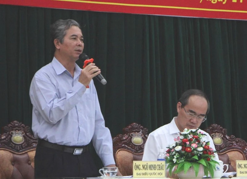 Thiếu tướng Ngô Minh Châu đang chia sẻ với cử tri Bình Chánh. Ảnh: TÁ LÂM