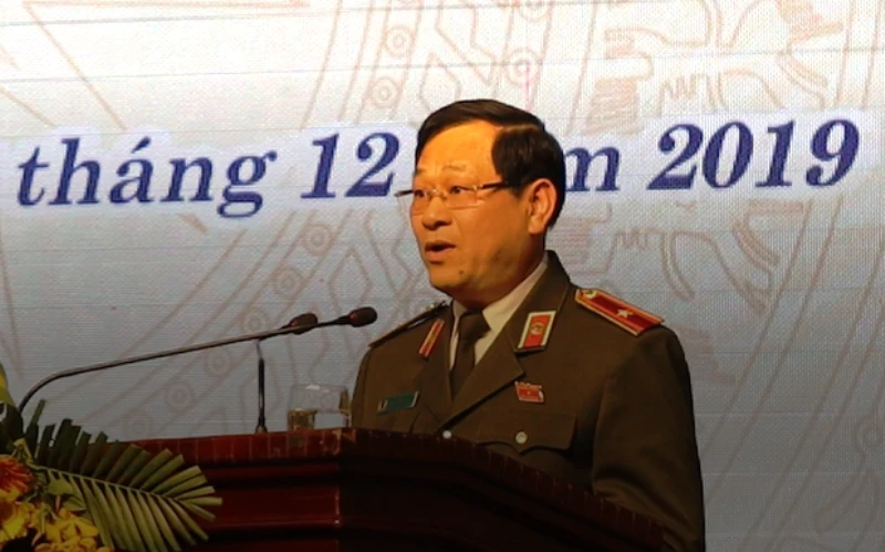 Thiếu tướng Nguyễn Hữu Cầu, Giám đốc Công an tỉnh Nghệ An, trả lời câu hỏi chất vấn.