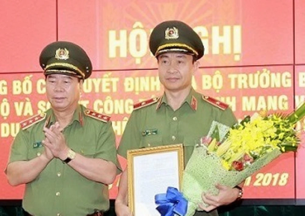 Thượng tướng Bùi Văn Nam (trái) trao quyết định bổ nhiệm cho Thiếu tướng Nguyễn Minh Chính. Ảnh: BCA
