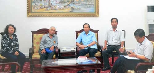 Bà Nguyễn Thị Mai gặp Bộ trưởng Bộ LĐ-TB&XH Đào Ngọc Dung (ngồi giữa) ở Hà Nội vào tháng 7-2016 đề nghị công nhận liệt sĩ cho chồng. Ảnh: CTV