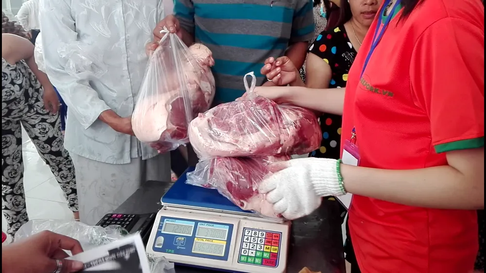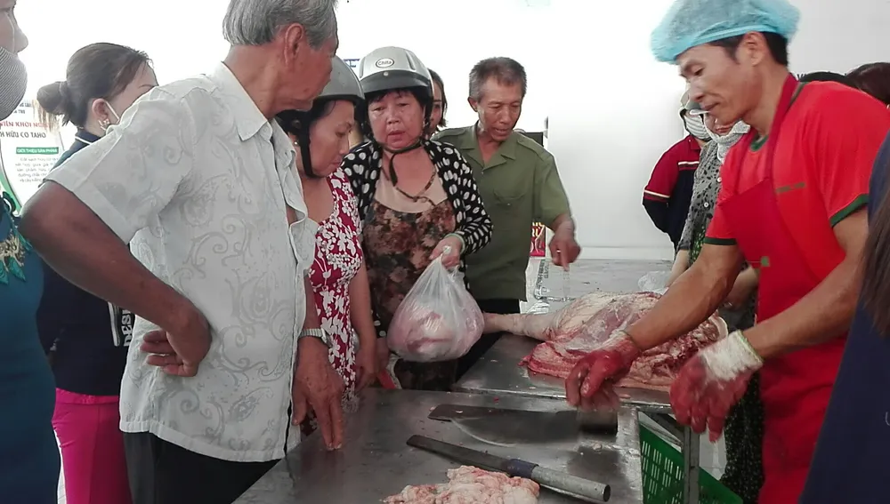 Ông Bé Tư cho biết thêm trong ngày đầu diễn ra chương trình, đã có tám tấn thịt heo được tiêu thụ. Với tình hình người tiêu dùng đông như hiện nay, dự kiến trong ba ngày diễn ra chương trình sẽ tiêu thụ khoảng 30 tấn thịt heo các loại.