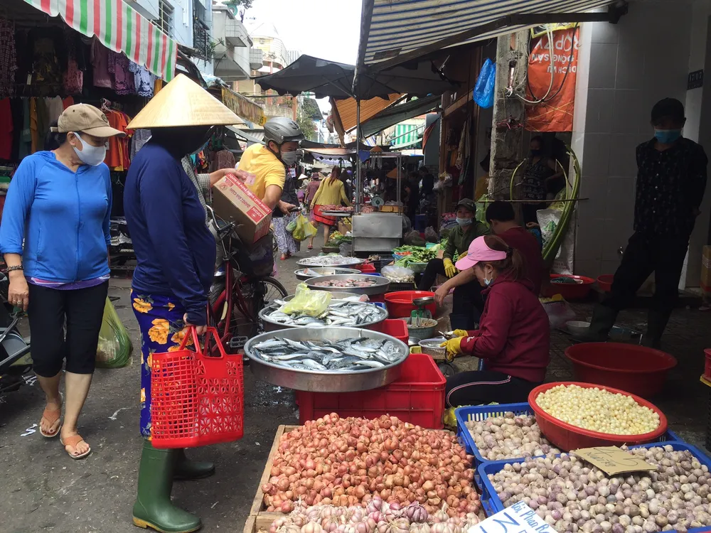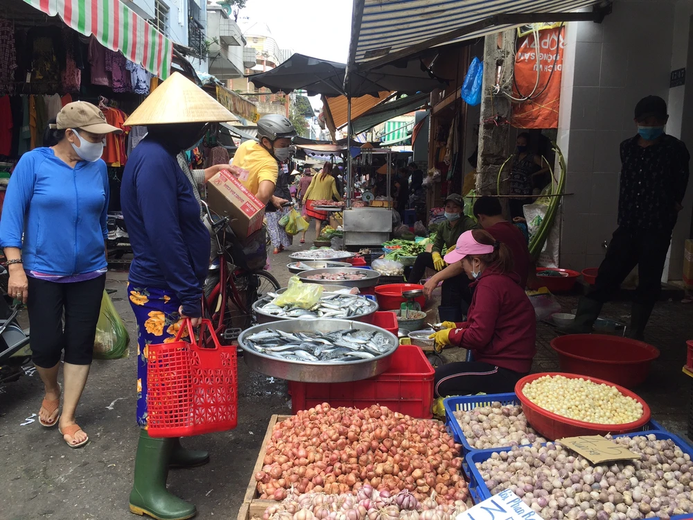 “Từ hôm có lệnh cách ly, tôi chỉ bán hết buổi sáng là nghỉ vì buổi chiều ít khách đi chợ. Thậm chí như hôm nay tôi không đi lấy hàng về bán mà chỉ nhờ bạn hàng lấy giùm về. Giá cả thực phẩm không biến động" - bà Hiền, tiểu thương chợ Phạm Văn Hai, kể.