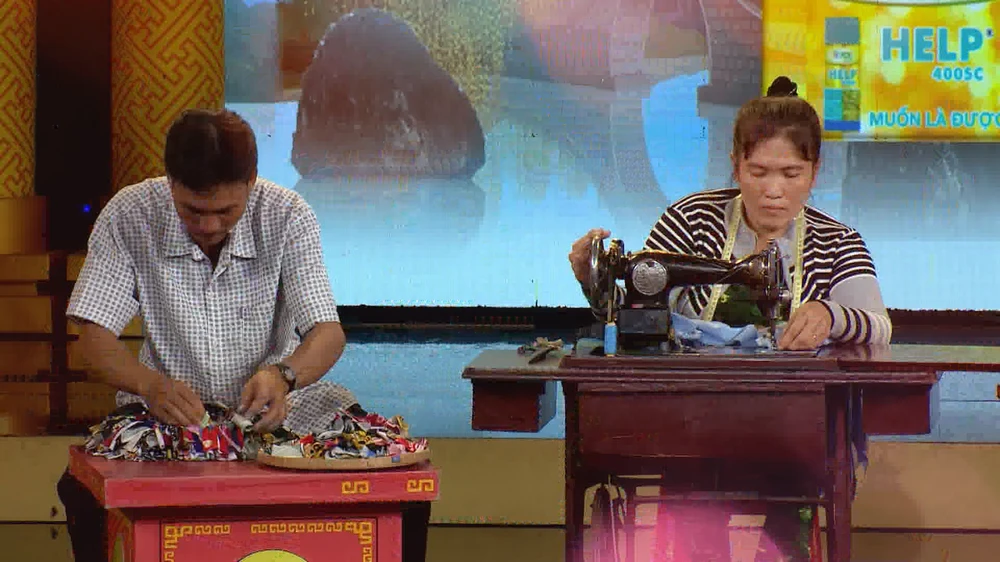 Bước vào thử thách biểu diễn tay nghề bằng cả hai công việc cùng một lúc là may áo sơ mi và kết thảm chùi chân. Dù có đôi chút căng thẳng vì áp lực thời gian nhưng vì tay nghề khéo léo, cộng với sự đồng lòng cao của hai vợ chồng nên anh chị cùng nhau vượt qua thử thách khá dễ dàng.