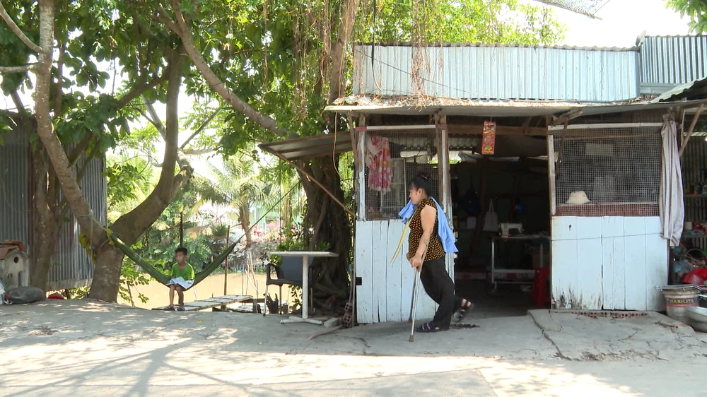Chị Phượng với đôi chân tật nguyền vẫn có nghị lực mạnh mẽ. Ảnh: BEE