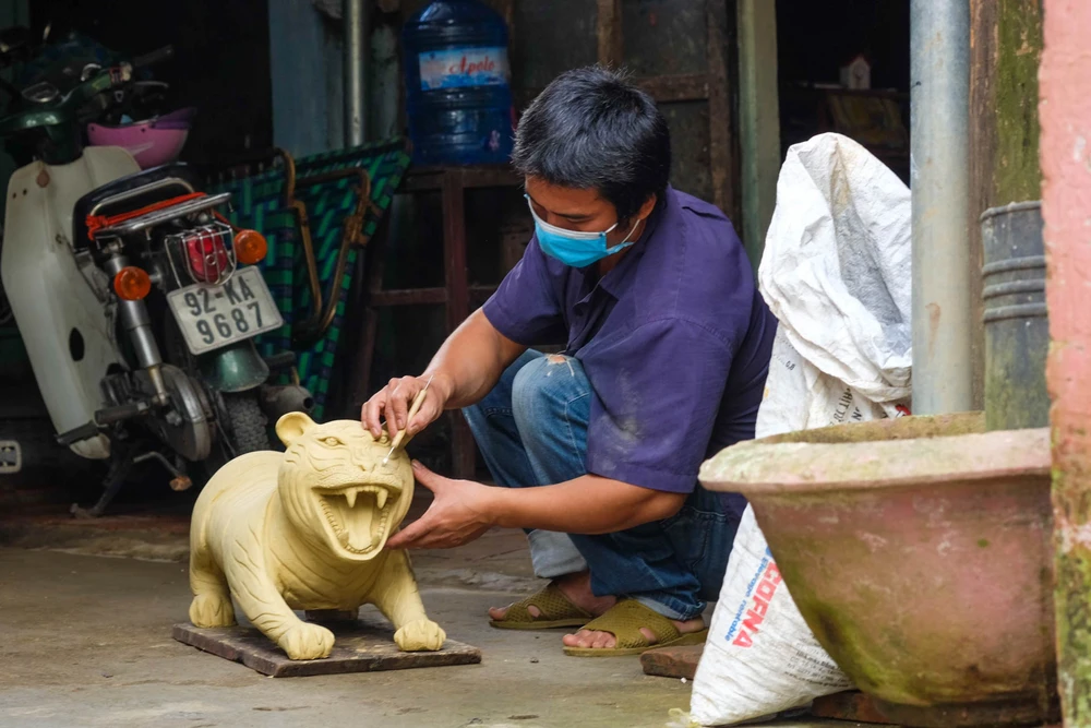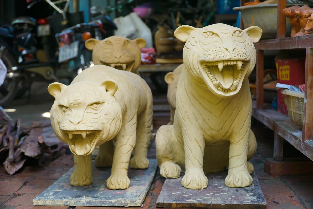 Được biết, để làm nên một tượng hổ, người thợ phải trải qua nhiều công đoạn như nhồi đất, tạo hình, vẽ họa tiết, đem phơi khô rồi mới đưa đi nung.