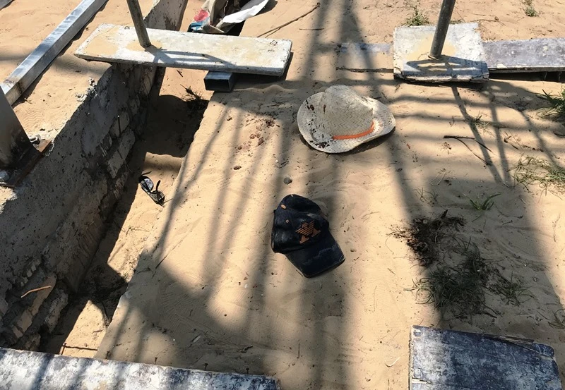 Vị trí nạn nhân rơi xuống đất. Ảnh: HẢI HIẾU