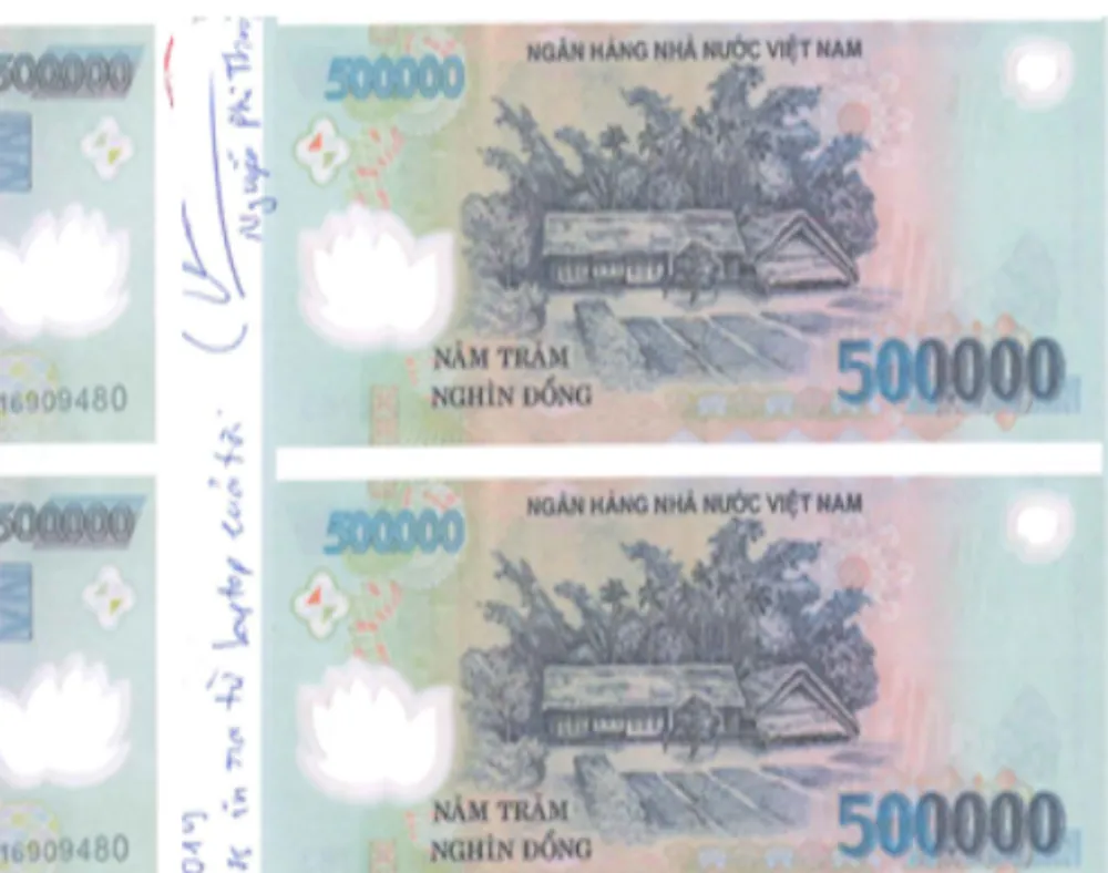 Tổng cộng, Thông đã in 180 triệu đồng tiền giả có cùng số seri CM 16909480. Trong đó, 98 triệu đồng tiền giả đã được in thành phẩm để mang lưu hành.