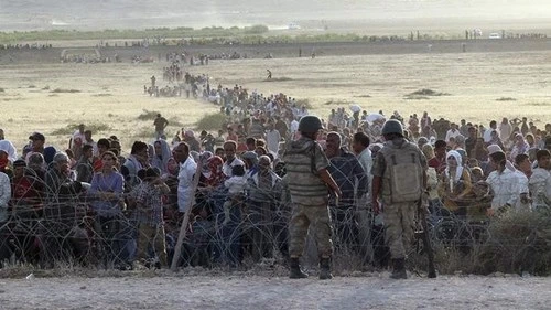 Số phận những người dân tị nạn sẽ ra sao khi trước mặt không thể qua biên giới Thổ Nhĩ Kỳ, sau lưng IS tấn công Kobani. Ảnh: Internet