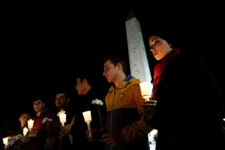 Người dân cầu nguyện cho các nạn nhân thiệt mạng trong vụ đánh bom gần quảng trường Sultanahmet ở Istanbul