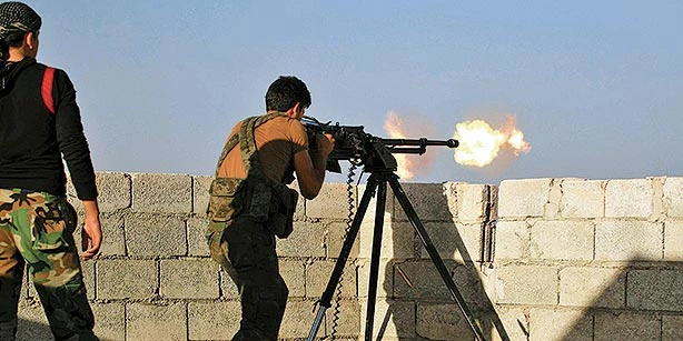 Một phiến quân đang nã súng tại mặt trận ngoại ô phía bắc Aleppo, Syria ngày 10-10-2014. Ảnh: Reuters