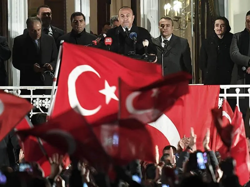 Ngày 3-3, hãng tin DW dẫn lời ông Cavusoglu cáo buộc Đức theo đuổi chính sách hai mặt chống lại Thổ Nhĩ Kỳ và nhấn mạnh Ankara sẽ không bị “hăm dọa”. Bình luận này được đưa ra sau khi TP Gaggenau (Đức) hủy chuyến thăm của Bộ trưởng Tư pháp Thổ Nhĩ Kỳ Bekir Bozdag vận động ủng hộ cuộc trưng cầu dân ý.