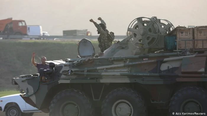 Lực lượng Azerbaijan lái xe tăng bọc thép. Ảnh: DW
