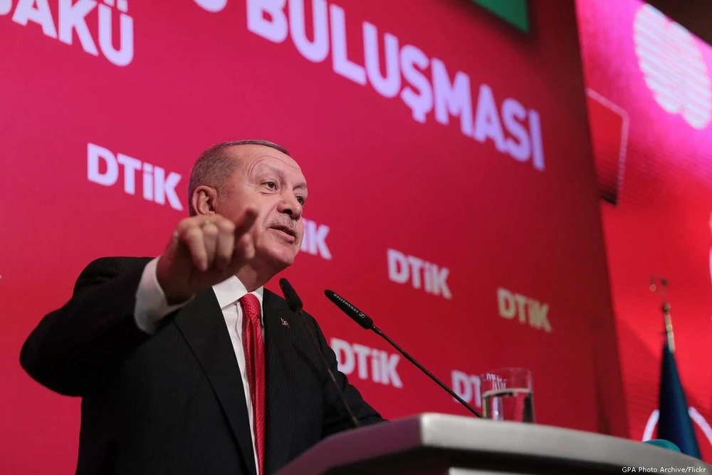 Tổng thống Thổ Nhĩ Kỳ Recep Tayyip Erdogan phát biểu tại thủ đô Baku (Azerbaijan) hôm 14-10. Ảnh: GPA