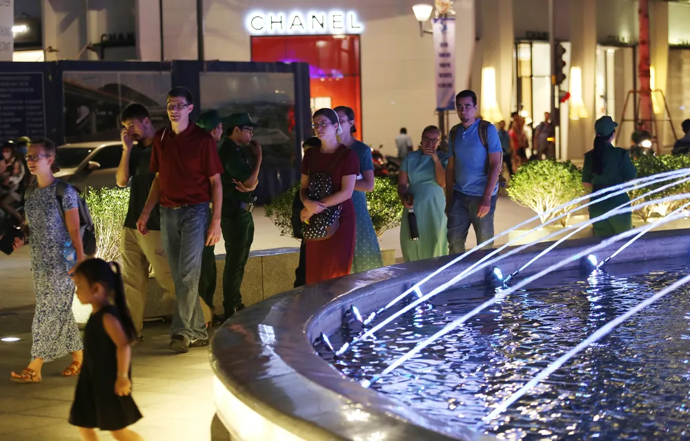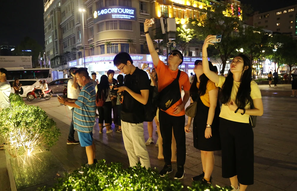 Ngay trong buổi tối đưa vào hoạt động, rất đông người dân và du khách thích thú chụp ảnh tại đây.