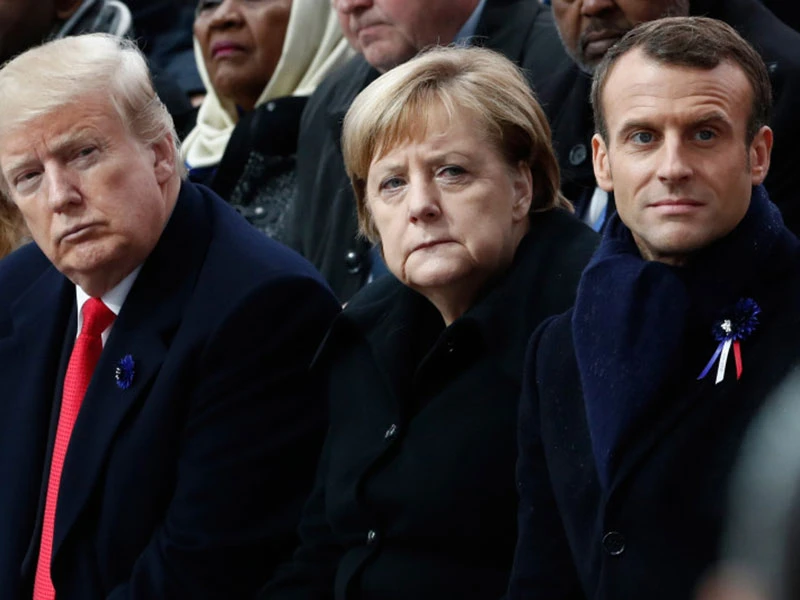 Vì thỏa thuận hạt nhân Iran, Tổng thống Mỹ Donald Trump (trái) đang phải đối đầu với hai đồng minh là Thủ tướng Đức Angela Merkel (giữa) và Tổng thống Pháp Emmanuel Macron (phải). Ảnh: GETTY IMAGES