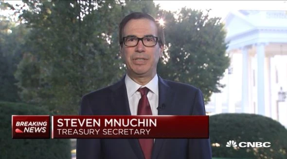 Ông Mnuchin trả lời kênh CNBC về thỏa thuận đạt được giữa Mỹ và Trung Quốc hôm 11-10. Ảnh: CNBC