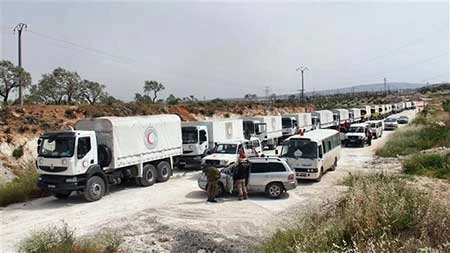 Trong khi đó, hàng cứu trợ nhân đạo định chuyển đến khu vực bị bao vây ở Aleppo vẫn còn bị mắc kẹt tại biên giới Thổ Nhĩ Kỳ-Syria (ảnh). Cho dù ngừng bắn nhưng tình hình an ninh không cho phép đoàn xe khoảng 20 chiếc chở hàng cứu trợ chạy đến Aleppo như LHQ mong muốn. Phóng viên đài truyền hình Pháp France 24 tại Beirut (Lebanon) Selim El Meddeb ghi nhận khoảng 250.000 người dân ở Aleppo đang nóng lòng chờ đợi hàng cứu trợ nhân đạo.