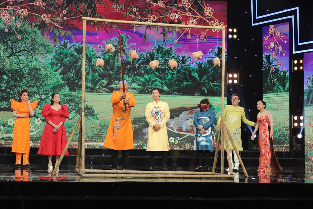 Sau những phần truyền tin vui nhộn, đội Tết phát tài giành được 40 điểm, còn đội Xuân tài lộc nhỉnh hơn với 50 điểm.