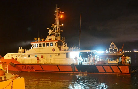 Tàu SAR 412 đưa các ngư dân về trong đêm. Ảnh: Tấn Tài