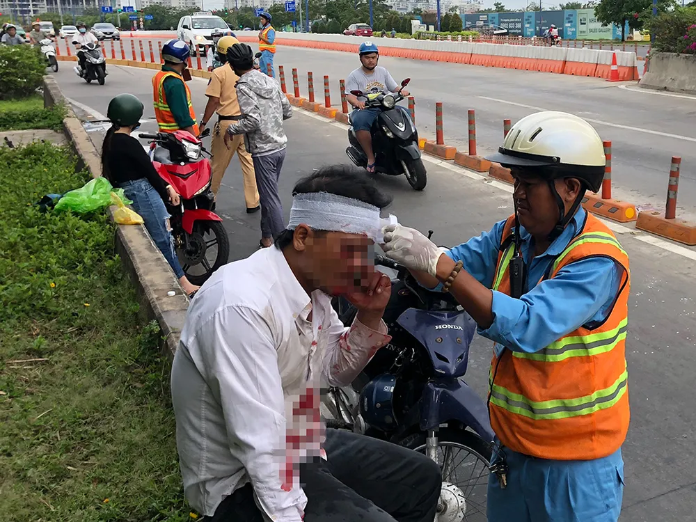 Lực lượng CSGT sau đó có mặt cùng nhân viên Trung tâm Quản lý hầm Thủ Thiêm sơ cứu, băng bó vết thương cho nạn nhân rồi nhanh chóng chuyển người này vào Trung tâm cấp cứu Sài Gòn (quận 2).