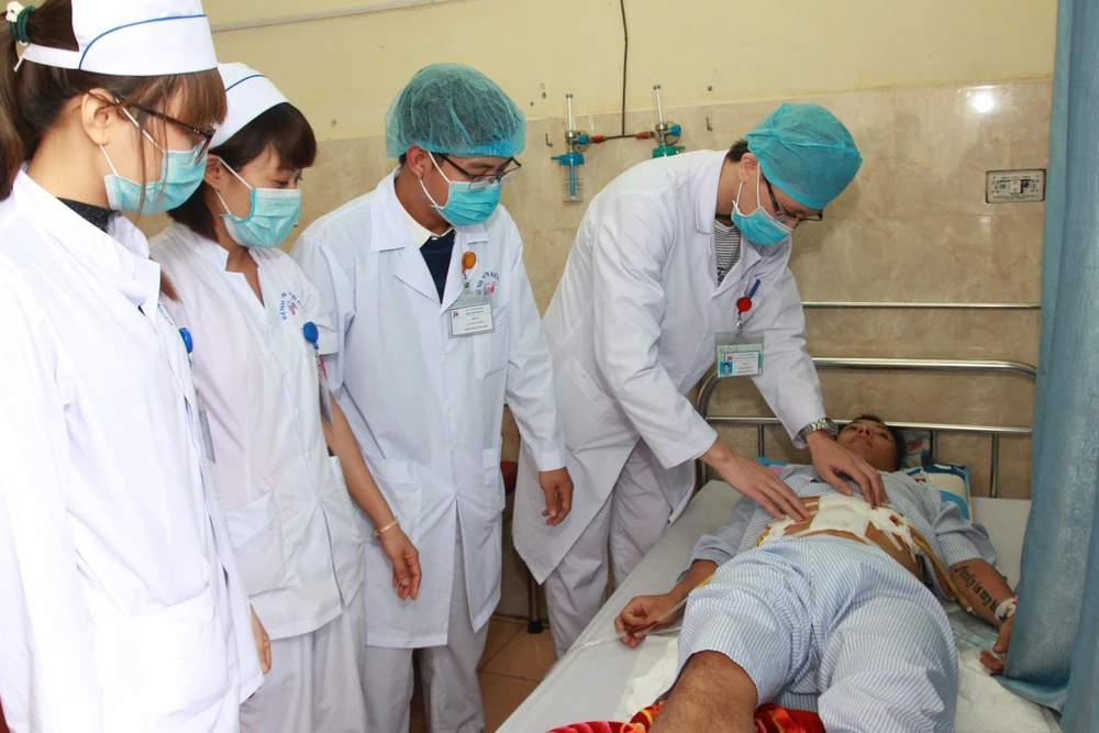Trước đó, 20 giờ 40 ngày 11-12, bệnh viện tiếp nhận bệnh nhân Dương trong tình trạng bị sốc nặng do vết thương ở vùng bụng; máu chảy ồ ạt. Qua khám, hội chẩn, các bác sĩ xác định bệnh nhân bị tổn thương nặng ở lá lách, gan, tụy, phổi; không đo được huyết áp; tiên lượng tử vong rất cao.