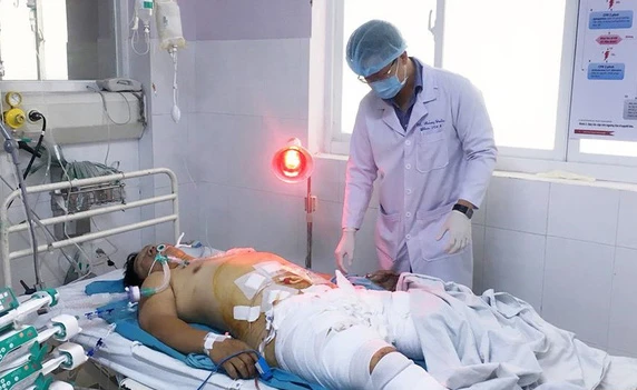 Các BS nhanh chóng cầm máu và xử lý các vết thương. Trong quá trình phẫu thuật, anh T. được truyền tổng cộng 12 đơn vị hồng cầu lắng, huyết tương tươi đông lạnh và kết tủa lạnh.