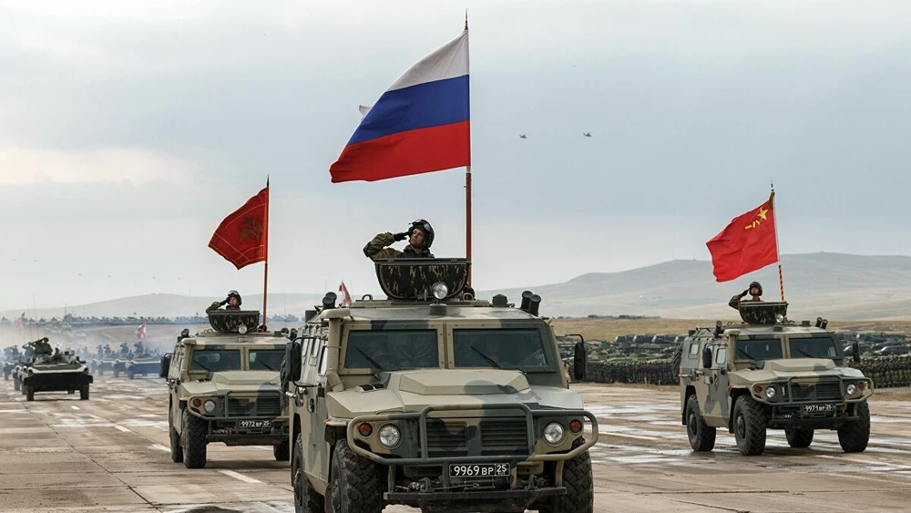 Lực lượng quân đội Nga và Trung Quốc tập trận chung. Ảnh: SPUTNIK