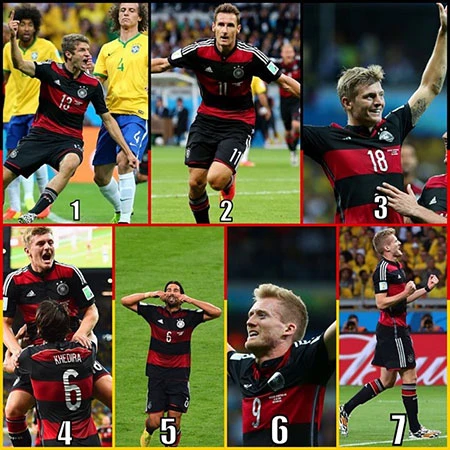 Niềm hạnh phúc của các cầu thủ ghi bảy bàn thắng vào lưới Brazil giúp tuyển Đức lần thứ tám chơi trận chung kết World Cup. Ảnh: GETTY IMAGES