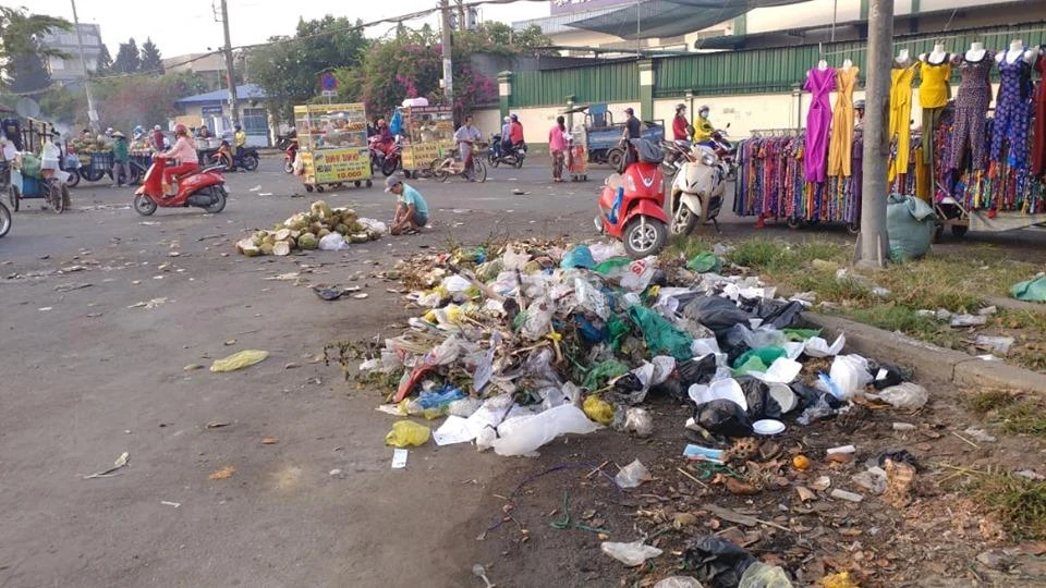 Dễ dàng thấy những hình ảnh chất thải nhựa một lần tại các chợ. Ảnh: NC