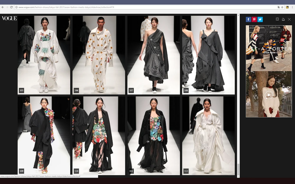 Trước đó, một số hình ảnh của bộ sưu tập Em Hoa cũng được tờ Reuters đăng tải trong video tập hợp những khoảnh khắc ấn tượng của Tokyo Fashion Week.