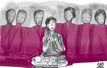 - Thôi đừng buồn nữa các cô, chú. Vu lan tới mà ai nấy buồn so thì mất vui. Để con ca một bản vọng cổ Dệt chặng đường xuân nghe cho vui, chú năm ơi, chuẩn bị đờn nghe chú.