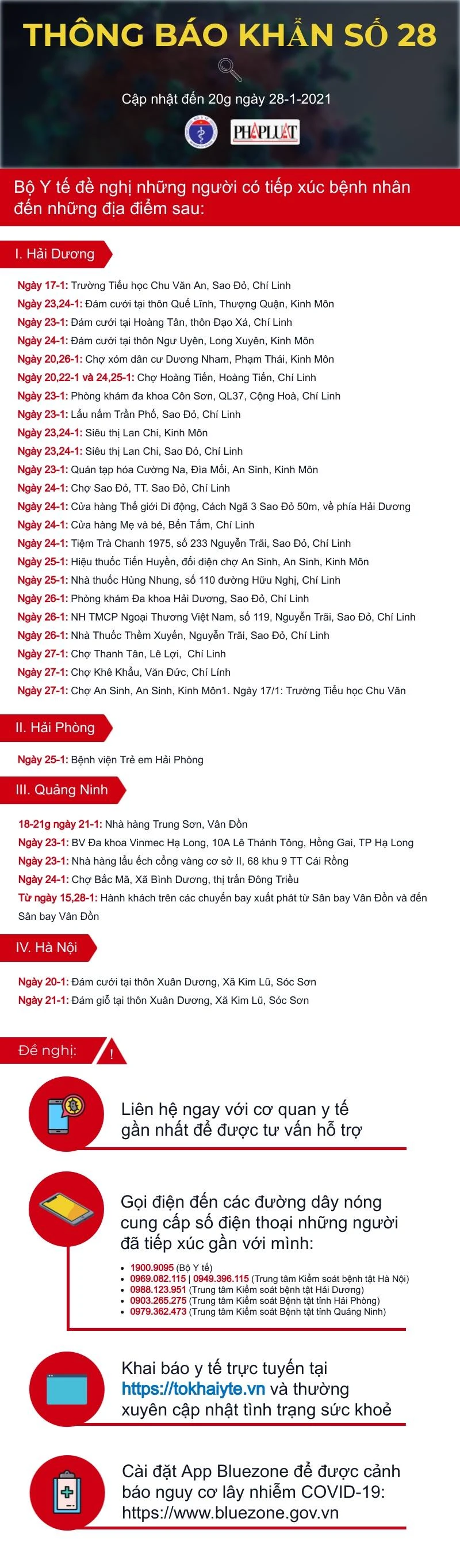 Thông báo khẩn số 28 của Bộ Y tế phát tối 28-1. Thực hiện: Minh Hiếu