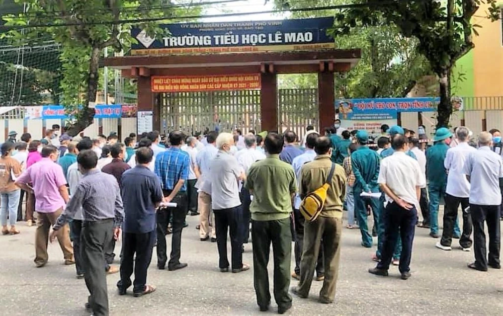 Trước đó, sáng sớm 1-9, tại điểm tiêm vắc xin Trường Tiểu học Lê Mao xảy ra tình trạng người dân tụ tập, chen chúc, nói chuyện không giữ khoảng cách theo khuyến cáo 5K của Bộ Y tế. Trong khi đó, TP Vinh đang thực hiện nâng thêm một mức so với Chỉ thị số 16 của Thủ tướng Chính phủ.