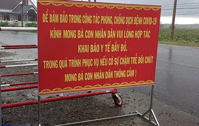 Bảng thông báo tại 1 chốt kiểm soát ở Bình Thuận.