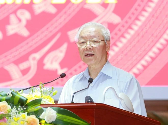 Có thể hiểu, cùng với bài viết “Một số vấn đề lý luận và thực tiễn về CNXH và con đường đi lên CNXH ở Việt Nam”, cống bố ngày 15-5, trước kỳ bầu cử đại biểu Quốc hội và HĐND các cấp; tiếp theo là bài phát biểu tại phiên khai mạc Kỳ họp thứ nhất, Quốc hội khóa XV, ngày 20-7; rồi bài phát biểu tại Phiên họp đầu tiên của Chính phủ nhiệm kỳ 2021-2026, ngày 11-8; và gần đây nhất là phát biểu tại Hội nghị MTTQ Việt Nam, ngày 16-8, nay thêm bài phát biểu này, Tổng Bí thư Nguyễn Phú Trọng, ở nhiệm kỳ thứ 3 của mình đang truyền đi thông điệp về nhiệm vụ xây dựng và bảo vệ Tổ quốc Việt Nam XHCN, không chỉ trong nhiệm kỳ 2021-2026 này, mà còn có giá trị đình hướng cho những nhiệm kỳ tiếp theo, hướng tới mốc 100 năm thành lập Đảng - 2030, 100 năm nước Việt Nam mới – 2045.
