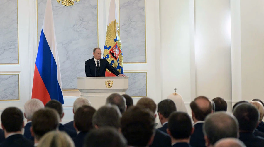 Tổng thống Putin phát biểu thông điệp liên bang tại hội trường St George ở điện Kremlin hôm nay (3-12). Ảnh: RT