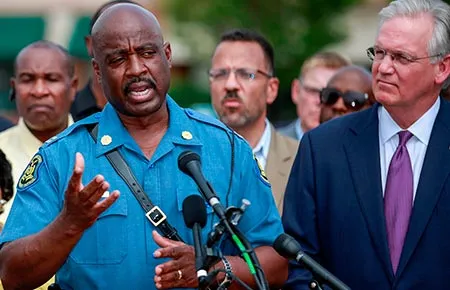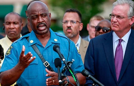 Chỉ huy cảnh sát Ron Johnson (ảnh) thông báo đã xảy ra ném bom xăng, nổ súng, cướp bóc, đập phá và hàng trăm người kéo đến văn phòng chỉ huy cảnh sát ném đồ vật vào cảnh sát. Do đó, ông phải nâng mức đáp trả. Cảnh sát có xe bọc thép yễm trợ đã giải tán người biểu tình bằng hơi cay.
