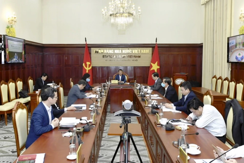 NHNN tham dự hội nghị trực tuyến giữa Chính phủ và các địa phương sáng 10-4. Ảnh: SBV