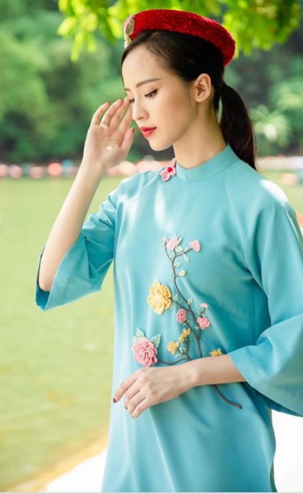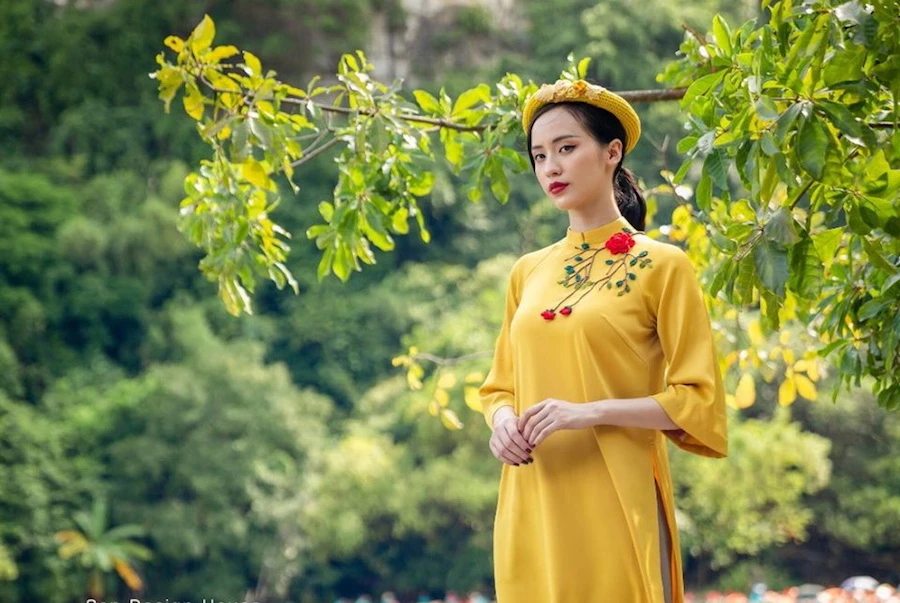 Áo dài phom dáng rộng cổ điển, không chít eo.