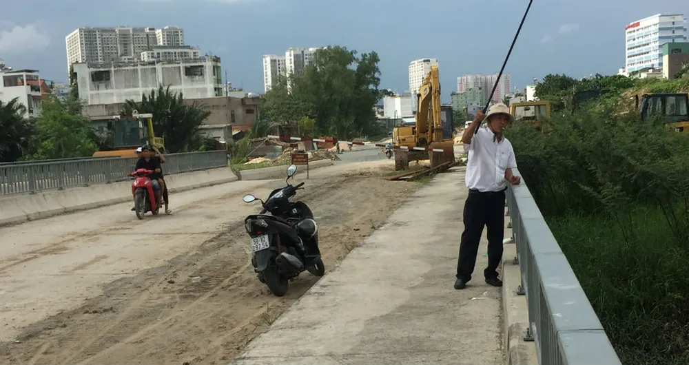 Lúc 9 giờ sáng 15-9, Khu quản lý giao thông đô thị số 4 (khu 4, chủ đầu tư thuộc Sở GTVT) tiến hành thông tạm đoạn đường D1 chạy dọc sông Ông Lớn, quận 7 và cầu Rạch Bàng trước thời gian kế hoạch năm tháng.