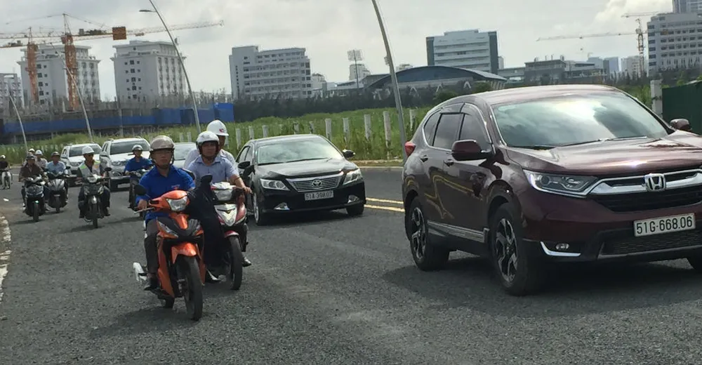 Lúc 9 giờ sáng 15-9, những đoàn xe máy, ô tô đầu tiên lưu thông trên đường D1 và qua cầu Rạch Bàng, quận 7.