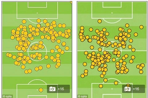Bảng thống kê dưới đây cho thấy cầu thủ của Man United còn chuyền bóng nhiều hơn so với Yay Toure (Man City), Mikel Arteta (Arsenal). Thậm chí Carrick còn vượt qua thành tích của chính mình. Trước đây, thành tích chuyền bóng tốt nhất của Carrick ở mùa giải này là 102 đường chuyền/trận.