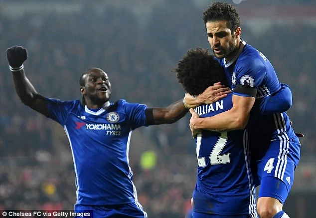 Thầy trò HLV Antonio Conte vừa có trận thắng thứ 10 liên tiếp ở mặt trận Premier League sau khi hạ chủ nhà Sunderland 1-0. Chiến thắng này giúp Chelsea củng cố vững chắc ngôi đầu bảng với 6 điểm cách biệt (tương đương hai trận thắng) so với hai đội xếp sau là Liverpool và Arsenal.