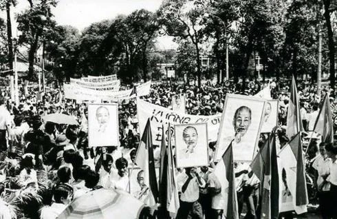 Mít-tinh mừng đất nước thống nhất. Ảnh: Tư Liệu