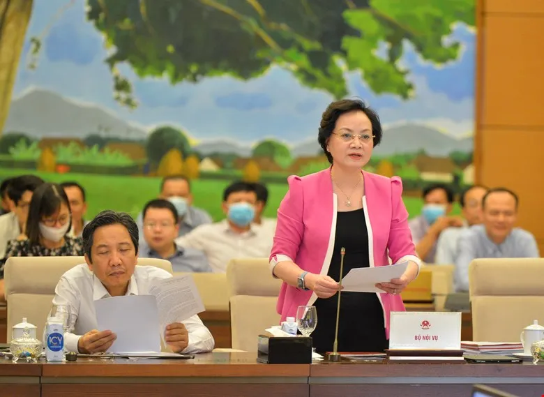 Bộ trưởng Nội vụ Phạm Thị Thanh Trà trình bày tờ trình của Chính phủ. Ảnh: quochoi.vn