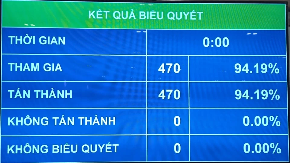 470 đại biểu Quốc hội tham gia biểu quyết tán thành cơ cấu tổ chức Chính phủ nhiệm kỳ 2021-2026 như tờ trình của Chính phủ khoá XIV. Ảnh: TRỌNG PHÚ